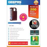 Hey, let’s make the night more special! Geepas presents you with a rechargeable solar LED emergency lantern. It is easy to carry as it has a compact size and can fit into your travel bag with ease. With its brighter light and long-lasting performance, it is ideal for camping as well as sudden power outages. This rechargeable LED lantern has a 4V, 1600mAh battery that can provide continuous low light for 25 hours. It will be your friend in darkness and can easily take care of all the light for a long time. After being discharged, the battery requires 10 to 15 hours to recharge completely. After charging, it is ready to be used again. It can also be very useful in unannounced or sudden power outages. If you are on a camping trip, let the Geepas Rechargeable Solar Lantern be by your side and brighten your trip when the daylight has disappeared. Use it in your tent, on your table, or when going out at night. Ideal for camping, keeping at home for use during power outages, or relaxing in the garden at night, it is suitable for both indoor and outdoor use. Note: You must recharge your lamp regularly. If the battery stays discharged for a long time, it can reduce the battery’s lifespan and affect performance. Features Battery: 4V 1.6Ah Sealed Lead-Acid Rechargeable Battery Light Dimmer Function: 12V DC Socket & 6V 0.4 Solar Panel Charging Time: 10-15 Hours Working Time in Low Light: 25 Hours Product Size: 140x230mm Product dimensions (LxBxH): 13.3×12.2×24.6 cm “ Key Features: Emits a powerful beam of light which illuminates the area with a bright radiance 2 charging methods, environmental-friendly with solar panel and built-in rechargeable battery Light-dimmer function allows you to adjust the light according to your requirement easily Premium housing construction proffers added protection against elemental hazards Sprucely crafted to render a long lifespan ensuring extensive usage
