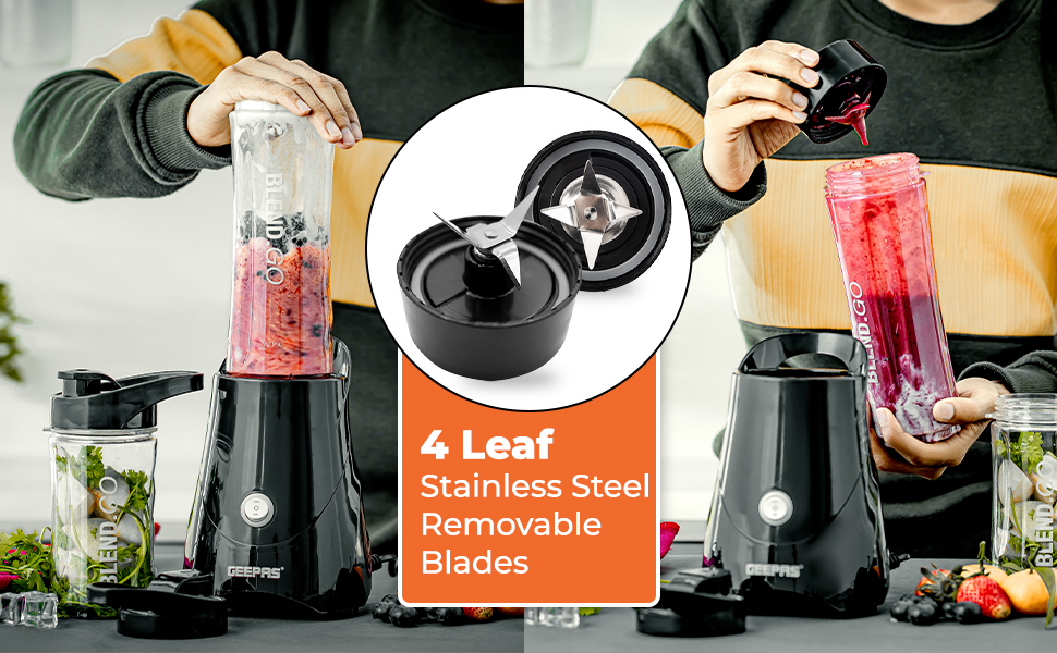 Key Features: Geepas Sports Smoothie Protein Milkshake Maker Blender, Stainless Steel Blades On/Off Control Personal Blender, 300 W, Black/Clear, GSB44075. POWERFUL & COMPACT BLENDER – 300W powerful copper motor, can blend a variety of fruit and vegetables, also can crush small ice cubes for a summer drink. Compact blender bottle makes blending smoothies much faster, and also saves space for your kitchen. ONE STEP TO A FRESH LIFE – It is easy and fast to get juicing. Just load your ingredients into the cup. Press or let go the bin to switch the juicer on or off. With the all sided design, the bottle can be placed perfectly without being examined and directed on the mixer. You can enjoy juice, milk shake, puree, fruit and vegetable drinks, complementary food and more immediately. 570 & 400 ML TRITAN BLENDER BOTTLES – Tritan is often used to make baby bottles, it’s BPA free, safety, no odour, non-discolouring. Provide you with healthy and delicious smoothie. 2pcs large capacity bottles, feature a lid with handle to double it as portable smoothie cup. you can make it easy to take on the go portability to the gym, office or class, in the car or in your bag. Enjoy tasty & healthy homemade beverages everywhere. EASY USE & SAFETY LOCK – One button operation, get a smoothie in seconds. Double safety lock, help you to confirm whether the cap is screwed correctly and whether the blender bottle is correctly installed on the base before start work. FAST AND EFFICIENT – 4 Stainless extra sharp extraction blades. Crush ice with 300 watts of power. Perfect for shakes, smoothies, food prep, frozen blending and more. Enjoy the healthy juice and smoothies with your loved ones.
