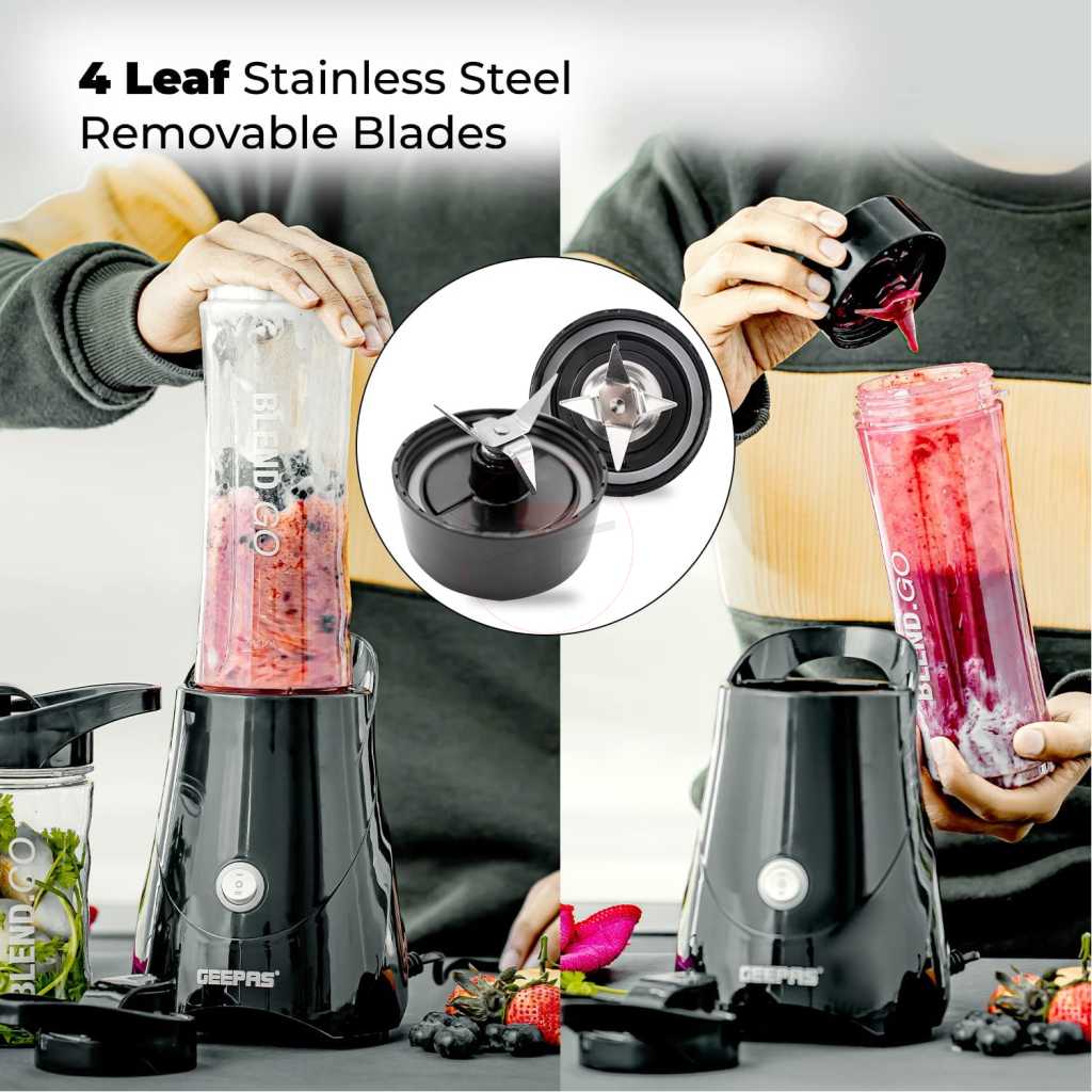 Geepas Sports Smoothie Protein Milkshake Maker Blender, Stainless Steel Blades On/Off Control Personal Blender, 300 W, Black/Clear, GSB44075.