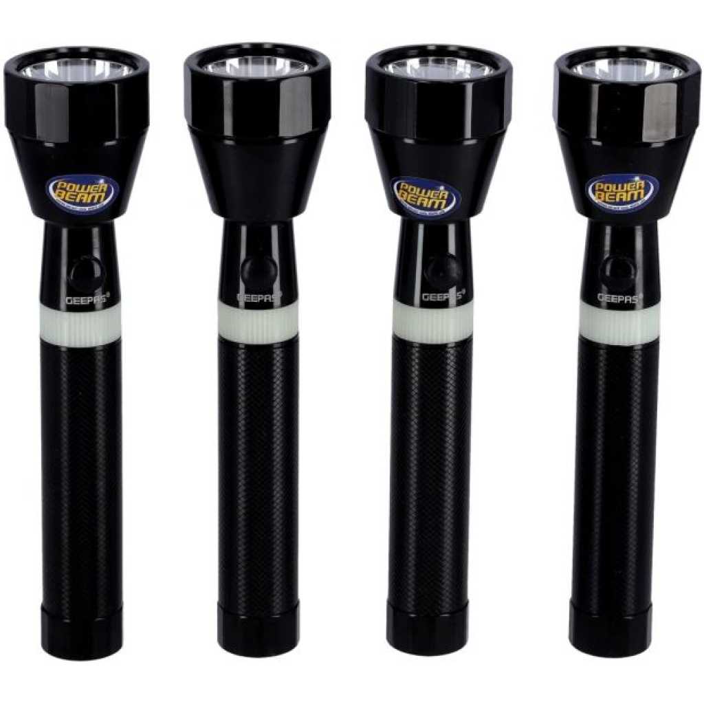 Geepas Rechargeable Led Flashlight Set, Gfl4668 Has Cool White Natural Light And Allows You To Identify The Exact Objects Even In The Darkness The Torch Body Is Made With Aluminium And Rubber Making It Highly Durable Geepas Torch Can Be Used As An Emergency Lights In Case Of Power Failures At Your Home, Office Or Anywhere Super Bright & Reliable Torch Ideal For Outdoor Activities Such As Dog Walking, Hunting, Trekking, Weekend Outing, Night Security, Patrol And More This Torch Is Lightweight And Is Extremely Easy To Use The Round Of Torch Is Made With Rubber So It Shine At Night Key Features: Geepas Torch 4Pcs Rechargeable LED Flashlight 216.5 Mm GFL4668 – Hyper Bright Cool White Light 2000 Meters Range With 1500mAh Battery | CREE LED | Regulated Intensity Flashlight | 2 Years Warranty. RECHARGEABLE & HIGH CAPACITY BATTERY – This pack of 4 Led Torch has a highly durable standby mode and is perfectly meant for campaigning, trekking, cycling, emergency in nights and weekend outings. It works continuously for 2.5 hours on a single charge. It comes 1500mAh rechargeable battery. RANGE UPTO 2000 METER – These Geepas 4Pcs led torch has incredible reach max beam distance up to 2000 meters with regulated intensity and the glowing round rubber. This torch allows you to see objects, persons, or roads for a very long distance. HYPER BRIGHT & TOUGH – This 4 set torchlight stands out unique for cool white like natural light and this will let you identify the exact objects even in the darkness. Highly resisting body built suitable in any environment without any performance deviation. DURABLE ALUMINIUM BODY WITH ROUND RUBBER GLOW – Built up of highly durable aircraft-grade aluminium, hard-anodizes, skid proof and shockproof. This torch has a night glowing body that can be easily accessible at night. COMES WITH 2 YEARS OF MANUFACTURER WARRANTY.