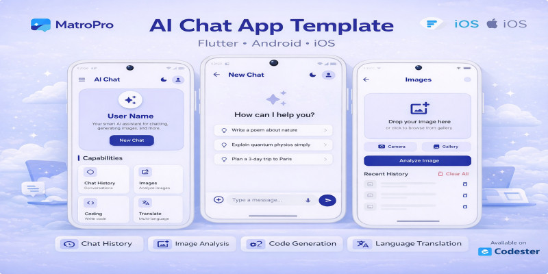 Gemini - AI Chat App Flutter UI Template. Premium Flutter AI Chat UI Kit. Modern & clean UI for Android/iOS. Ready for API integration