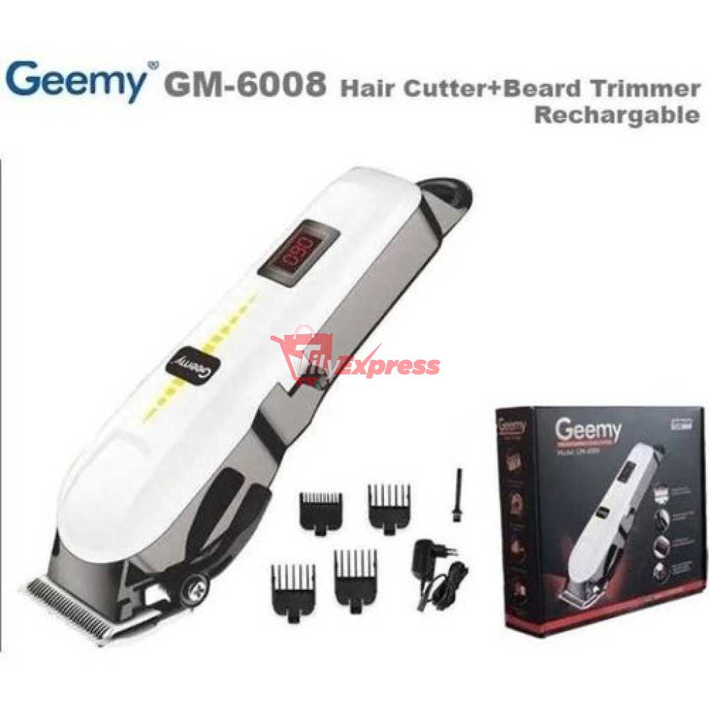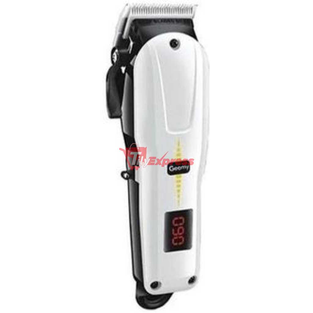 Gemmy Rechargeable Cordless Shaving Machine With Battery Indicator – White. High performance motor with stainless steel blade. Good quality rechargeable hair trimmer/hair clipper with LCD display of battery indicator Hair clipper is intended for professional use. It features high precision zero-overlap blades for superior speed and a convenient variable thumb lever for adjusting the taper and texture without changing blade. Designed for smooth,quick,and precise performance on all types of hair. It contains: 3,6,10,13 mm, spacing comb, oil bottle, cleaning brush and charging adaptor. Key Features: Gemmy Rechargeable Cordless Shaving Machine With Battery Indicator – White. Stainless steel blade Taper control cutting lenghts LCD battery capacity display 3,6,10,13mm spacing comb 2000mAh lithium-ion battery 3 hours cordless usage 3 hours charging time Safety power supply cord
