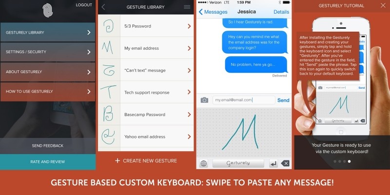 Gesture Based Keyboard - iOS App Template. Full framework for hand drawn swipes that instantly paste any message created by the user.