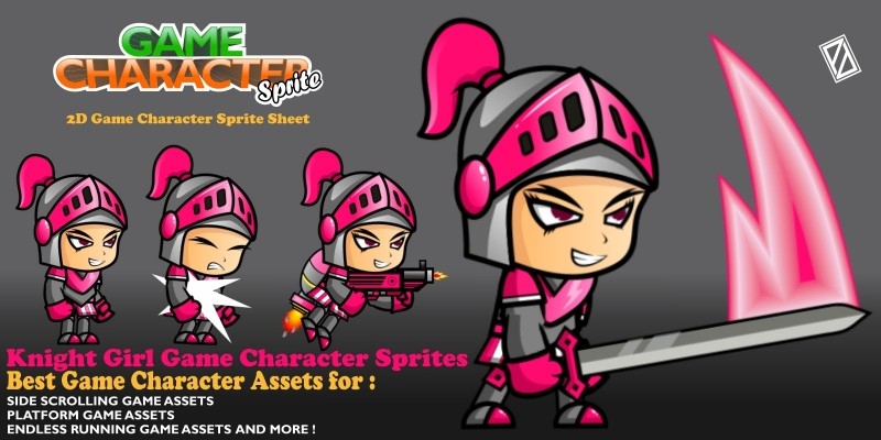 Girl Knight Game Character Sprite. Suitable for your Shooting game, Running Game,Platform Game, and more side Scrolling games.​