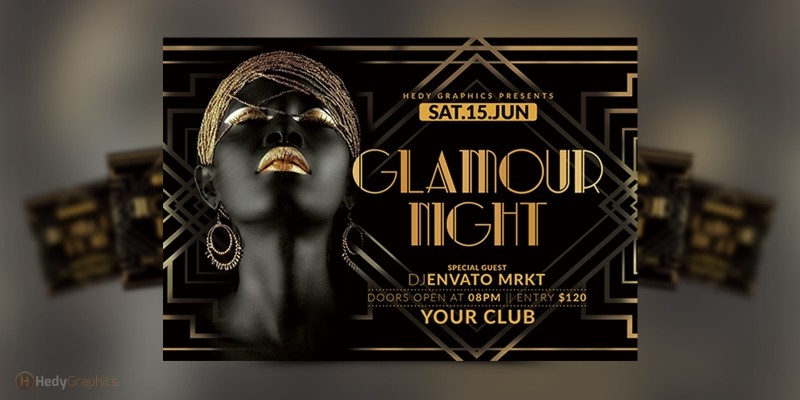Glamour Night Flyer. Glamour night flyer ------------------------------------------- PSD 6x4 Size + Print Bleeds CMYK Print Ready 300 DPI Laye