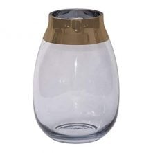 Glass Lights, Flower Vase With Gold Top Rim, lights, For table, living room, kitchen Decor. This classic yet modern, contemporary style of vase will sublimely decorate any space in your home. Made of highly translucent, beautifully stylish grey glass it is designed to compliment any style of decor. Add arrangements and bouquets of real flowers such as roses, lillies or tulips, or of artificial flowers, plants or twigs to create stunning centrepieces for your kitchen, living room, dining room or bedroom space. The vase is beautifully designed, each piece individually crafted. It has a highly polished gold top beneath a cold cut rim which has received special after-processing treatment making it beautiful to look at as well as smooth and safe to handle. The base of the vase is exceptionally well produced, with superb quality glass creating a substantial, well balanced shape to accentuate both small and large decorative arrangements. This vase is a stunning addition for a variety of uses around your home and living space – in addition to flowers and arrangements, LED lights (not included) placed inside, turn this vase into a beautifully lit centrepiece display for your wedding or event or simply to light up the dark nights at home! This vase’s classic yet modern look would make a fabulous gift for an anniversary, wedding, a new home or maybe indulge and treat yourself, lift your mood and bring pleasure to those dark nights! Key Features: MODERN STYLE – this vase is modern and contemporary with it’s classic lines and luxurious highly polished gold top it will beautifully compliment any space in your home SUPERB QUALITY – the highly translucent shine of the glass highlights the quality and substance of craftmanship in the material and the design of this beautiful vase EMBELLISH YOUR HOME – the classic, stylish lines of this vase will truly compliment any decor in your kitchen, dining room, living room or bedroom, offering an eye-catching centre for real or artificial flower displays UNLIMITED USES – this vase can beautifully compliment many different uses. Try placing small LED lights (not included) inside the vase to create a stunning centrepiece for weddings and events or mood lighting for those dark winter nights PERFECT SIZE – with highly balanced proportions (base 16cm x height 23cm x neck 10cm) this vase is both small enough to garnish any table in your living room or dining room and large enough to create a stunning centrepiece decoration anywhere in your home