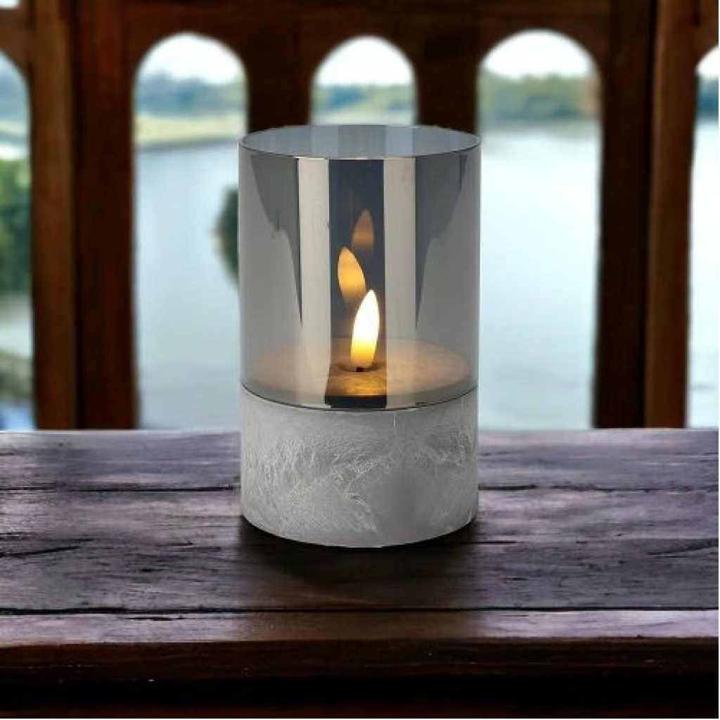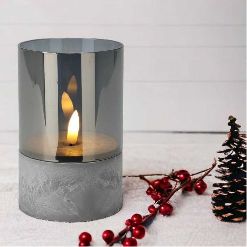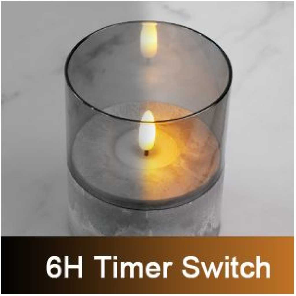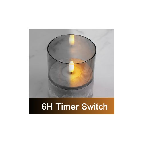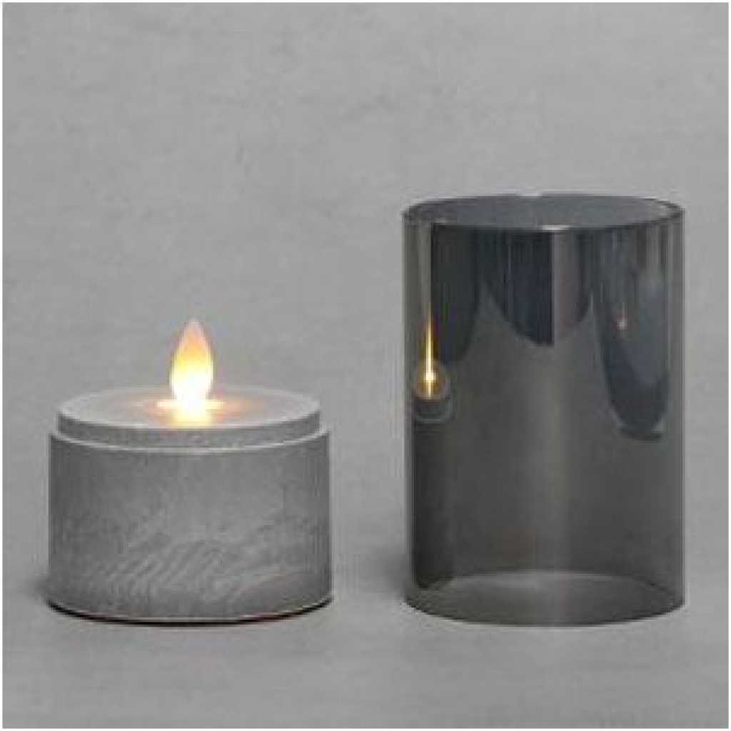 Industrial Style Candle Lights Set of 3 The light base is in the style of cement but is actually made of plastic which is very durable and sturdy. The grey glass tube is removable. There is a built-in timer in each candle, you can set 6 hours timer accoring to the switches. They can be used as table candles, decorative candles, Christmas candles, etc. Perfect for home, coffee shop and restaurant. 3 Ways Swtiches: ON – OFF – TIMER Once switch to “TIMER”, The light can be 6 hours on and 18 hours off every 24 hours. Moving Flames Look like real flame sways in the wind. Candles give off a warm amber glow. Removable Glass Tube The grey glass tube is removable. 0% Glass 50% Plastic GLASS DECORATIVE LIGHTS – The light base is in the style of cement but is actually made of plastic which is very durable and sturdy. The grey glass tube is removable. WARM GLOW LED LIGHT – The flame flickers which looks like a real flame sways in the wind. The candle gives off a warm amber glow. Good choice for the house decorations, parties, wedding and big events. 6H TIMER FUNCTION – There is a 3-way-switch on the light base: ON-OFF-TIMER. Once switch to “TIMER”, The light can be 6 hours on and 18 hours off every 24 hours. BATTERY POWERED SEASONAL LIGHTS – Each light requires 3 x AAA batteries (not included) CANDLE SET & DIMENSION – 3pcs of glass tubes (D 3″ x H 2.15″ / 3.15″ / 4.15″) and 3pcs of plastic light bases (D 3″ x H 2″) in a mail box. Assembled dimensions: D 3″ x H 4″ / 5″ / 6″