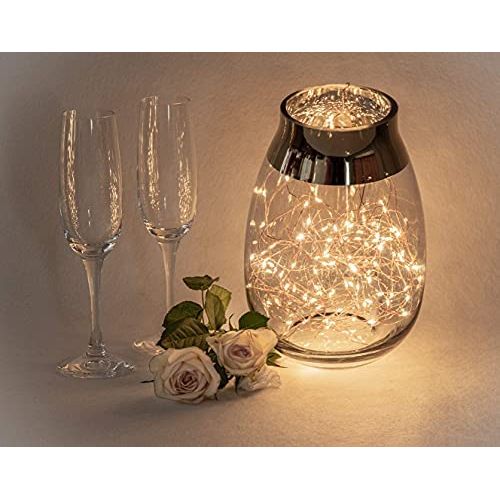 Glass Lights, Flower Vase With Gold Top Rim, lights, For table, living room, kitchen Decor. This classic yet modern, contemporary style of vase will sublimely decorate any space in your home. Made of highly translucent, beautifully stylish grey glass it is designed to compliment any style of decor. Add arrangements and bouquets of real flowers such as roses, lillies or tulips, or of artificial flowers, plants or twigs to create stunning centrepieces for your kitchen, living room, dining room or bedroom space. The vase is beautifully designed, each piece individually crafted. It has a highly polished gold top beneath a cold cut rim which has received special after-processing treatment making it beautiful to look at as well as smooth and safe to handle. The base of the vase is exceptionally well produced, with superb quality glass creating a substantial, well balanced shape to accentuate both small and large decorative arrangements. This vase is a stunning addition for a variety of uses around your home and living space – in addition to flowers and arrangements, LED lights (not included) placed inside, turn this vase into a beautifully lit centrepiece display for your wedding or event or simply to light up the dark nights at home! This vase’s classic yet modern look would make a fabulous gift for an anniversary, wedding, a new home or maybe indulge and treat yourself, lift your mood and bring pleasure to those dark nights!