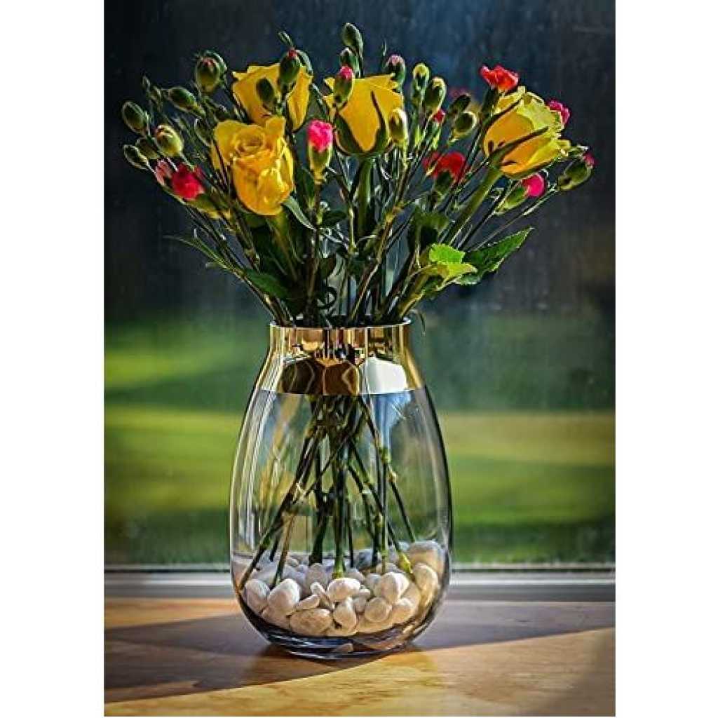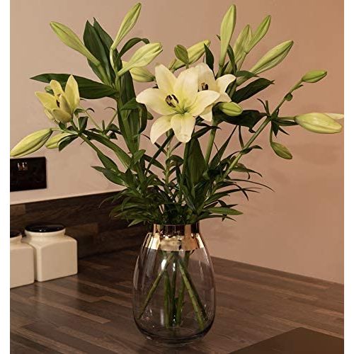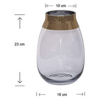 Key Features: MODERN STYLE – this vase is modern and contemporary with it’s classic lines and luxurious highly polished gold top it will beautifully compliment any space in your home SUPERB QUALITY – the highly translucent shine of the glass highlights the quality and substance of craftmanship in the material and the design of this beautiful vase EMBELLISH YOUR HOME – the classic, stylish lines of this vase will truly compliment any decor in your kitchen, dining room, living room or bedroom, offering an eye-catching centre for real or artificial flower displays UNLIMITED USES – this vase can beautifully compliment many different uses. Try placing small LED lights (not included) inside the vase to create a stunning centrepiece for weddings and events or mood lighting for those dark winter nights PERFECT SIZE – with highly balanced proportions (base 16cm x height 23cm x neck 10cm) this vase is both small enough to garnish any table in your living room or dining room and large enough to create a stunning centrepiece decoration anywhere in your home