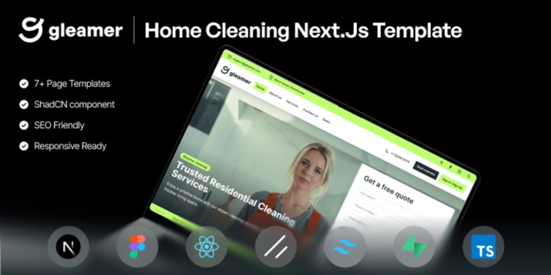 Gleamer Cleaning Nextjs Website Template. Gleamer is a Next.js cleaning website template designed for speed, flexibility, and professional cleaning services.