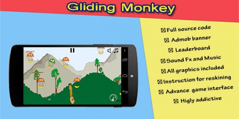 Gliding Monkey Trilogy Android Game Source Code. The monkey is controlled by tilting the phone. You can also push the boost button, which makes the monkey go slightly faster.