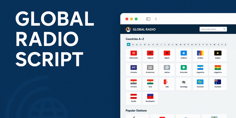 Global Radio Script. Global Radio Script is an automated HTML & JavaScript-based website that streams live radio from around the world. No admin pa