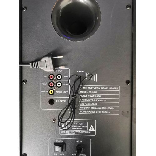 Key Features: Brand Name : GlobalStar Model Number : GS-3301 Input sensitivity:70dB Voltage :AC90V ~240V 50/60HZ Channels : (3.1) Material : Wooden & Plastic Output Power : 40W plus 15W*2 Speaker Unit : 6.5″ x1 / 3″ *3 DC 12V
