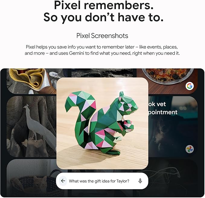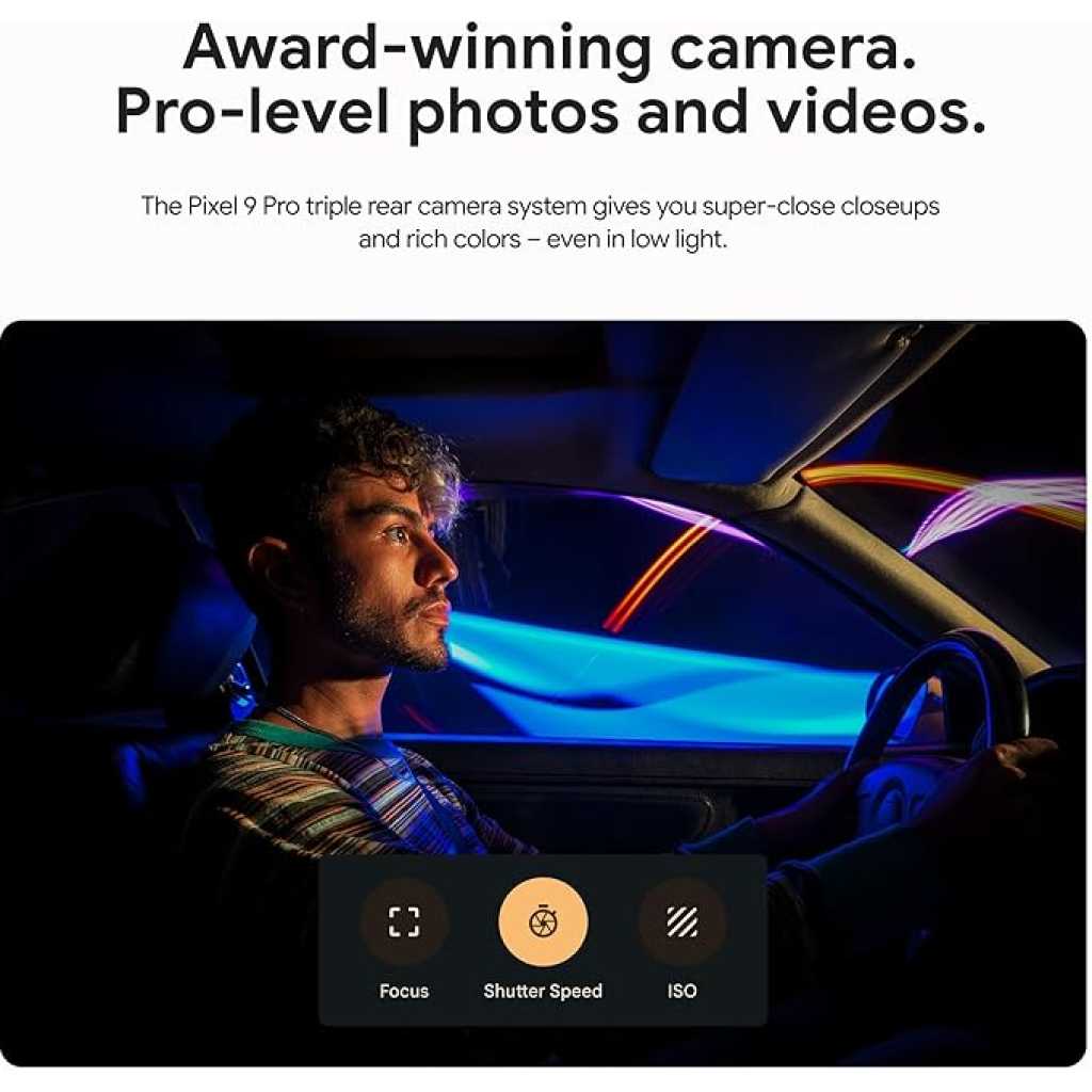 Key Features: Google Pixel 9 Pro 16GBRAM 512GB Storage, Android Smartphone with Gemini, Triple Rear Camera System, 24-Hour Battery, and 6.3″ Super Actua Display, Black Pixel 9 Pro with Gemini is the most powerful Pixel yet, and now comes in two sizes; it has a pro-level camera and it’s engineered by Google, so it gets the best of Google AI first Unlocked Android phone gives you the flexibility to change carriers and choose your own data plan[1]; it works with Google Fi, Verizon, T-Mobile, AT&T, and other major carriers Google Pixel 9 Pro’s triple rear camera is the most powerful Pixel Camera yet; get high-quality video up to 20x with Super Res Zoom Video[2]; enhance your videos up to 8K with Video Boost; and take sharp videos in low light with Night Sight Video Make your photos better than you can imagine with Google’s AI; take a picture and be in it too with Add Me[4]; Best Take helps everyone look their best[2]; and with Magic Editor, you can reframe photos, reimagine the scenery, and more[4] Get more info quickly with Gemini, your built-in AI assistant[3]; instead of typing, use Gemini Live; it follows along even if you change the topic or switch the question[31]; and Pixel Screenshots helps you save things you’ll want to remember later