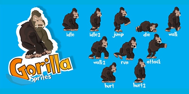 Gorilla Game Character Sprite Sheets. This Game asset suits for game developers, or indie game developers who want to make GUI cartoon game for Android or iOS.
