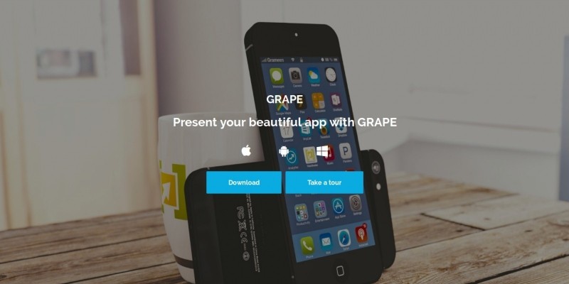 Grape App - App Landing Page HTML Template. HTML5 and CSS3. Well Organized and valid Code. Premium Quality Template.