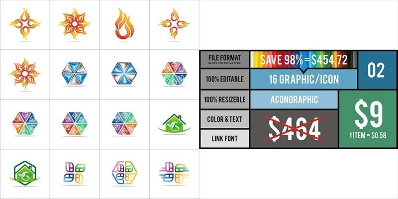 Graphic Icon suitable for Logo #2. SPECIAL OFFER for a few days, only $ 9 (Price Real $ 464 - SAVE 98%) Prices are around $ 0.58 per item!