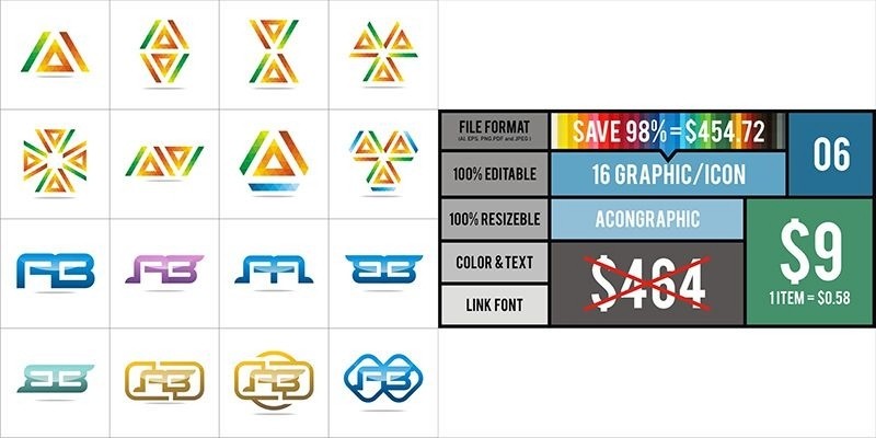 Graphic Icon suitable for Logo #6. SPECIAL OFFER for a few days, only $ 9 (Price Real $ 464 - SAVE 98%) Prices are around $ 0.58 per item!