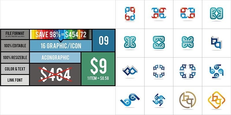 Graphic Icon suitable for Logo #9. SPECIAL OFFER for a few days, only $ 9 (Price Real $ 464 - SAVE 98%) Prices are around $ 0.58 per item!