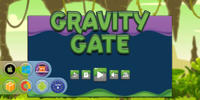 Gravity Gate - Buildbox Template. Touch to switch gravity, collect coins, avoid obstacles, and unlock multiple characters in this endless runner.