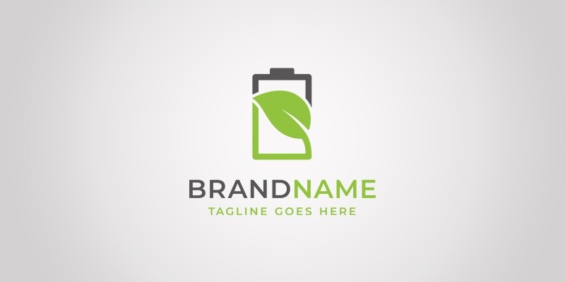 Green Energy Logo. Simple and modern logo template design that combines a leaf with a battery.