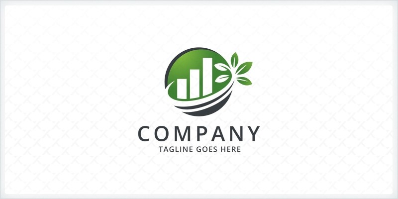 Green Growth Bar Chart - Logo Template. Bar Chart and Leaves Design, simple and modern logo for financial company.