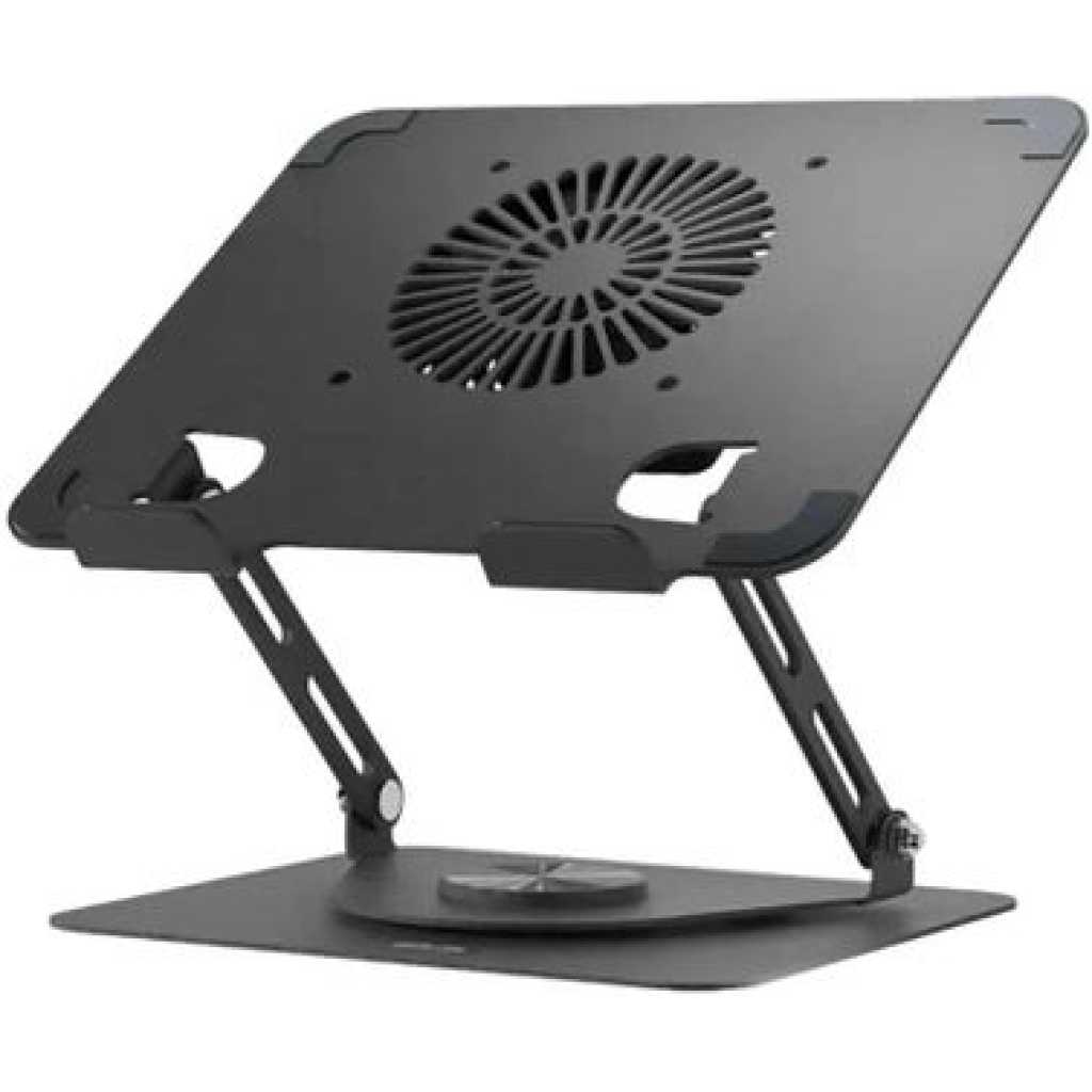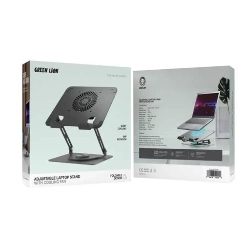 The Black Green Lion Adjustable Laptop Stand with Cooling Fan is better for comfort and efficiency. Made of carbon steel and silicone, it is highly stable and durable and easily holds laptops from 13″ to 17″. The integrated cooling fan works at 2000 RPM ±10% and provides optimal cooling airflow of 2.6 CFM air volume to avoid overheating. The design permits full 360° rotation, thus allowing freedom of adjustment for an ergonomically friendly setup. It boosts productivity and convenience with its foldable, non-slip silicone base and easy handling. The Green Lion Adjustable Laptop Stand is perfect for home, office, and travel and provides seamless and relaxing laptop use. Specification Material: Carbon Steel + Silicone Rated Voltage: 5V Rated Current: 0.12A Rated Power: 1W Rated Speed: 2000 RPM ±10% Air Volume: 2.6 CFM Noise Level: 30 dB Weight Capacity: 8 kg Compatible: 13″-17″ Laptop Features 360° Rotation Metal Material Cooling Fan Easy to Use Non Slip Silicone Foldable Design Key Features: 360° Rotation Metal Material Cooling Fan Easy to Use Non Slip Silicone Foldable Design