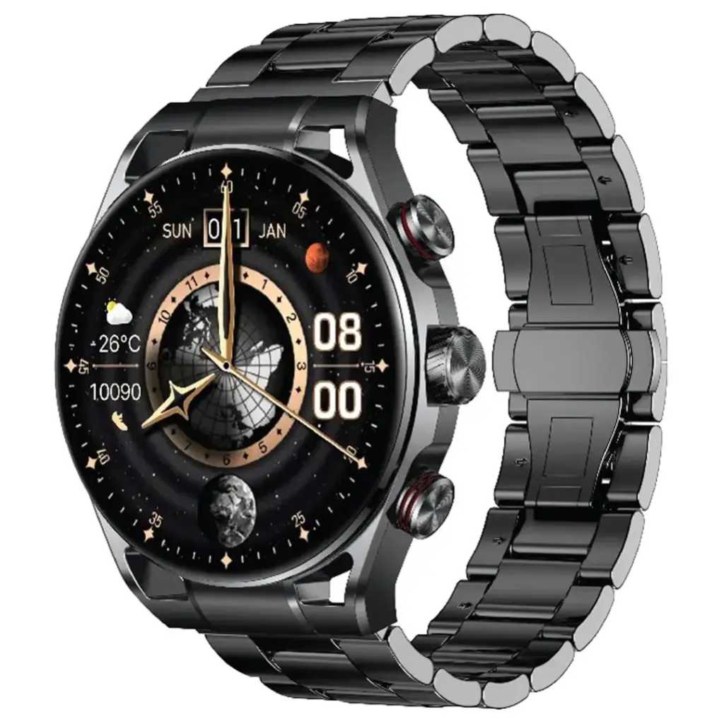 The Green Lion Chrono Pro Smart Watch is another premium wearable engineered for style and functionality. Equipped with a dynamic 1.6″ AMOLED display with a crisp resolution of 480 × 480 pixels, along with 1000-nit brightness, make sure viewability is never compromised, even in the sun. The 360mAh battery charges in less than 3 hours via magnetic pin charging, boasting 5-7 days of working time and as much as 25 days on standby. It shall be equipped with BLE 5.3 + BT 3.0 advanced connectivity and a BT call function, and it shall be able to make calls and notify social notifications in this fancy zinc alloy casing. Perfect for fitness enthusiasts: featuring over 100 sports modes, real-time heart rate, daily activities, and IP68 water-resistant. Additional highlights of the smartwatch include a rotary encoder button, voice recording, and a full-view touch display that makes this smartwatch quite an everyday thing. Specification Display: 1.6″ AMOLED Resolution: 480 × 480 Bluetooth: BLE 5.3 + BT 3.0 Battery Capacity: 360mAh Watch Case: Zinc Alloy Brightness: 1000 nit G-Sensor: SC7A20TR Charging Time: <3 Hours RAM + ROM: 960KB + 64Mb pRAM + 1Gb Charging Method: Magnetic Pin Charging Working Time: 5-7 Days Standby Time: 25 Days Water Resistance Level: IP68 Features Full View Touch Display BT Call Call/Social Notifications Voice Recording Heart Rate 100+ Sports Modes Rotary Encoder Button Activity Tracking Download App For Android Download App for iOS