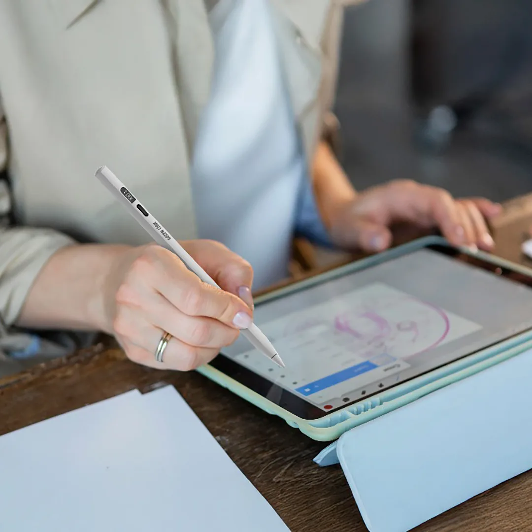 Green Lion Digital Stylus Pencil is precise and durable use, constructed with rugged PC and POM materials. It features a slim 1.7 mm nib, delivering low noise and silky writing. The stylus is equipped with a 130mAh battery with up to 15 hours of use time and a quick 18-minute Type-C fast charge. It also includes auto power-off after 10 minutes of inactivity to save battery and has 6 months’ standby time. Real-time OLED screen displays battery status, while the quick and responsive response includes no offset or lag. Auto sleep mode saves battery life, making it ideal for creative and professional use. Specification Material: PC+POM Nib Diameter: 1.7 mm Battery: 130mAh Charging Time: 18 min Charging port: Type-C Usage Time: 15 Hrs Standby Time: 6 Months Auto Power Off: 10 min Compatible: 2018 & After iPads (12.2 & Above) Features Advanced Tilt Sensitivity 15 Hrs Usage Time Type-C Fast Charging 10 min Auto Off No Offset, No Delay Fast & Smooth Response Real-time OLED Display Auto Sleep Mode 1.7 mm Low Noise Nib Diameter