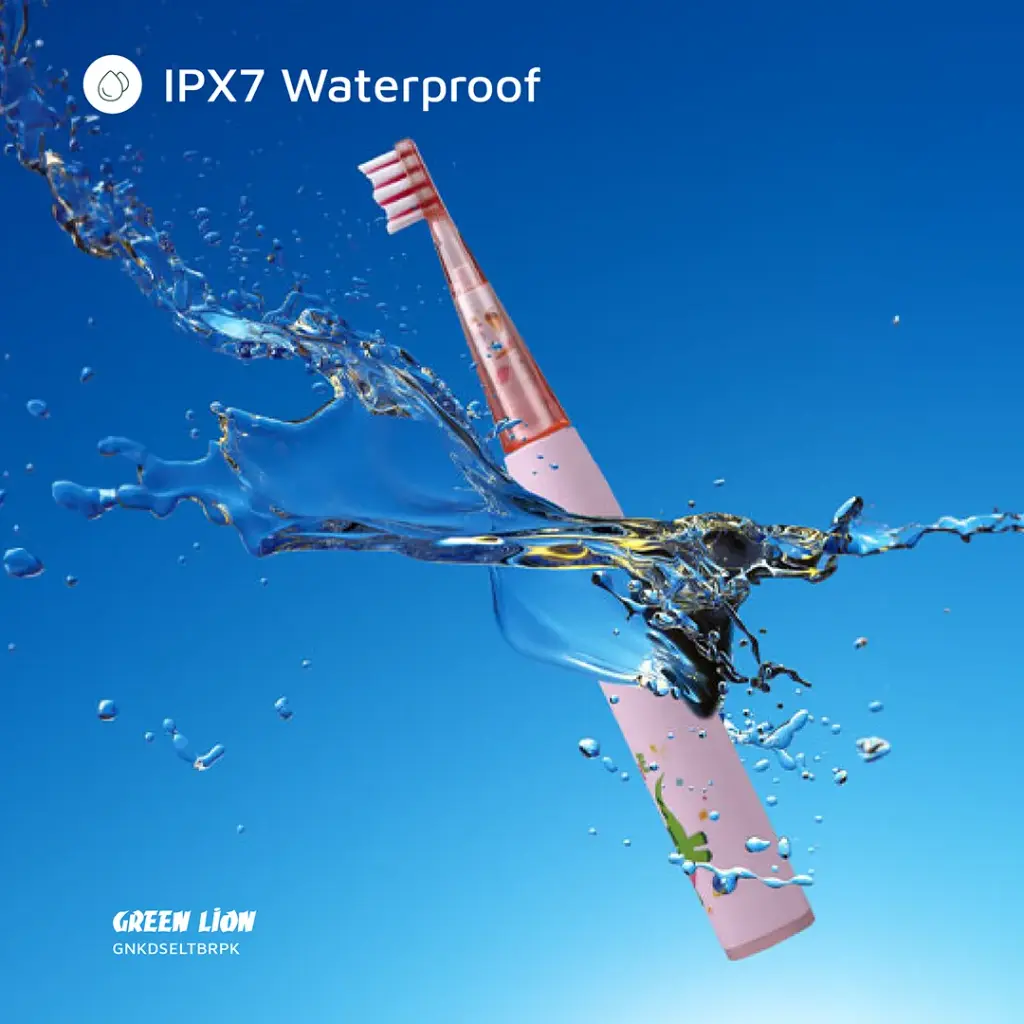 The Green Lion Kids Electric Toothbrush is specially designed for children aged 2 to 10 years, combining fun features with effective oral care. It offers 3 function modes and 2 intensity modes, allowing for a customizable brushing experience that adapts to the unique needs of young users. The brush features shining lights, making brushing more engaging and encouraging children to develop good oral hygiene habits. With a 2-minute smart timing function and a 30-second vibration reminder, this toothbrush ensures that children brush for the recommended amount of time and cover all areas of their mouths. The toothbrush provides 24,000 strokes per minute, delivering powerful yet gentle cleaning to help remove plaque and maintain healthy gums. Made with ABS material and nylon food-grade bristles, the Green Lion Kids Electric Toothbrush is safe and durable for everyday use. It comes with 2 brush heads, offering an extra replacement for continued hygiene. The 500mAh Li-ion battery offers up to 60 days of usage on a single charge, with a quick 3-hour charging time via a USB-DC port for easy recharging. The toothbrush is also IPX7 waterproof, allowing for use in the shower and easy cleaning. Weighing only 150g and measuring 22x22x110mm, the Green Lion Kids Electric Toothbrush is lightweight and perfectly sized for small hands, ensuring a comfortable and enjoyable brushing experience for kids.