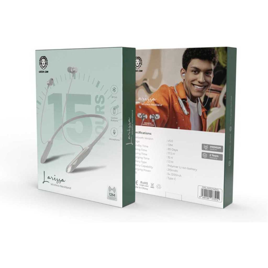 Green Lion Larissa Wireless Neckband Headphones, Control Buttons, Built-In Microphone, 12M Transmission Range, Bluetooth V5.0, 15H Play Time, 1.3H Type-C Recharge Time, Durable Material - Grey