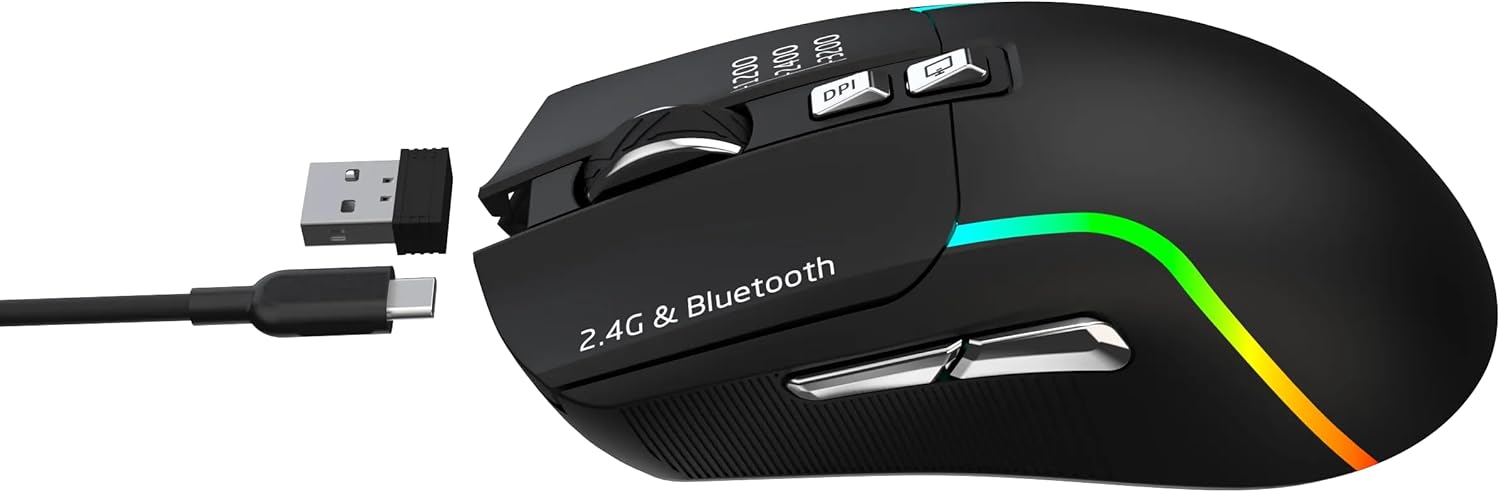 Key Features: 【 】Adjustable DPI 1200-2400-3200 for tailored sensitivity during gameplay. 【 】Made with ABS material for a durable and comfortable gaming experience. 【 】10-meter operating range with Bluetooth connection for flexible movement. 【 】7 control buttons for customizable commands and responsive gameplay. 【 】Ergonomically designed for extended comfort during long gaming sessions. 【 】The package includes Green Lion Rechargeable Gaming Mouse, a user manual for easy setup, – , , and a + .