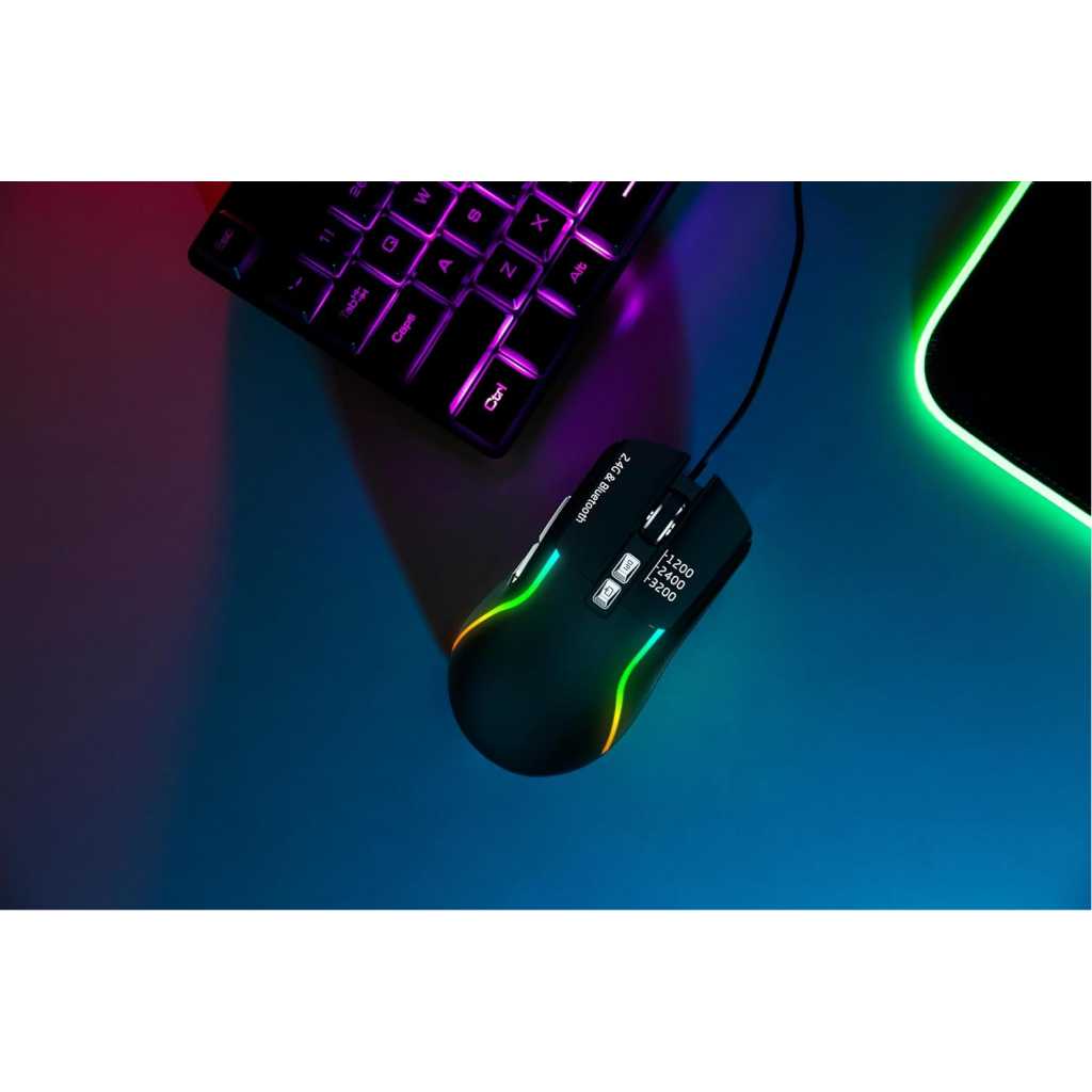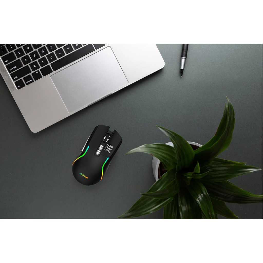 Boost your gaming with the Green Lion Rechargeable Gaming Mouse. This wireless mouse lets you play up to 10 meters away. You can set the DPI to 1200, 2400, or 3200 to get the right cursor speed for your games. It has seven buttons that let you control your way to win. The Green Lion Gaming Mouse is made of ABS plastic to handle long gaming sessions. It uses Bluetooth to connect, which means no lag and spot-on moves. Get the Green Lion Rechargeable Gaming Mouse to step up your game. Specification Optical Resolution: DPI 1200-2400-3200 Material: ABS Interface: 2.4GHz/Bluetooth Features 10m Operating Range Adjustable DPI 7 Keys