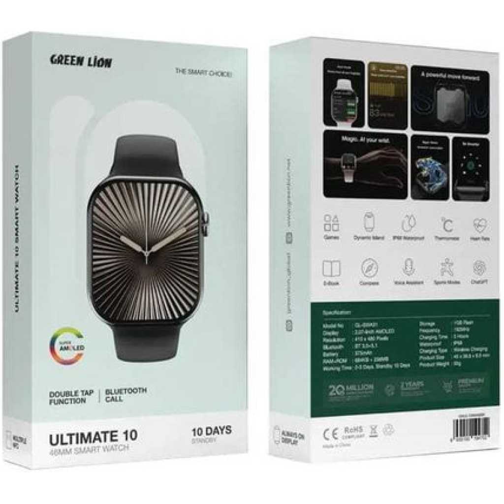 Green Lion Ultimate 10 46mm Smart Watch with Voice Assistant, Bluetooth Calling, Double Tap Function, Heart Rate Monitoring, 3 Hours Charging Time, 2-3 Days Working Time, Chat GPT -