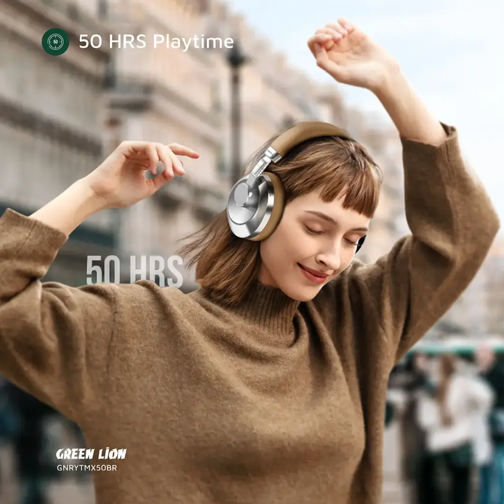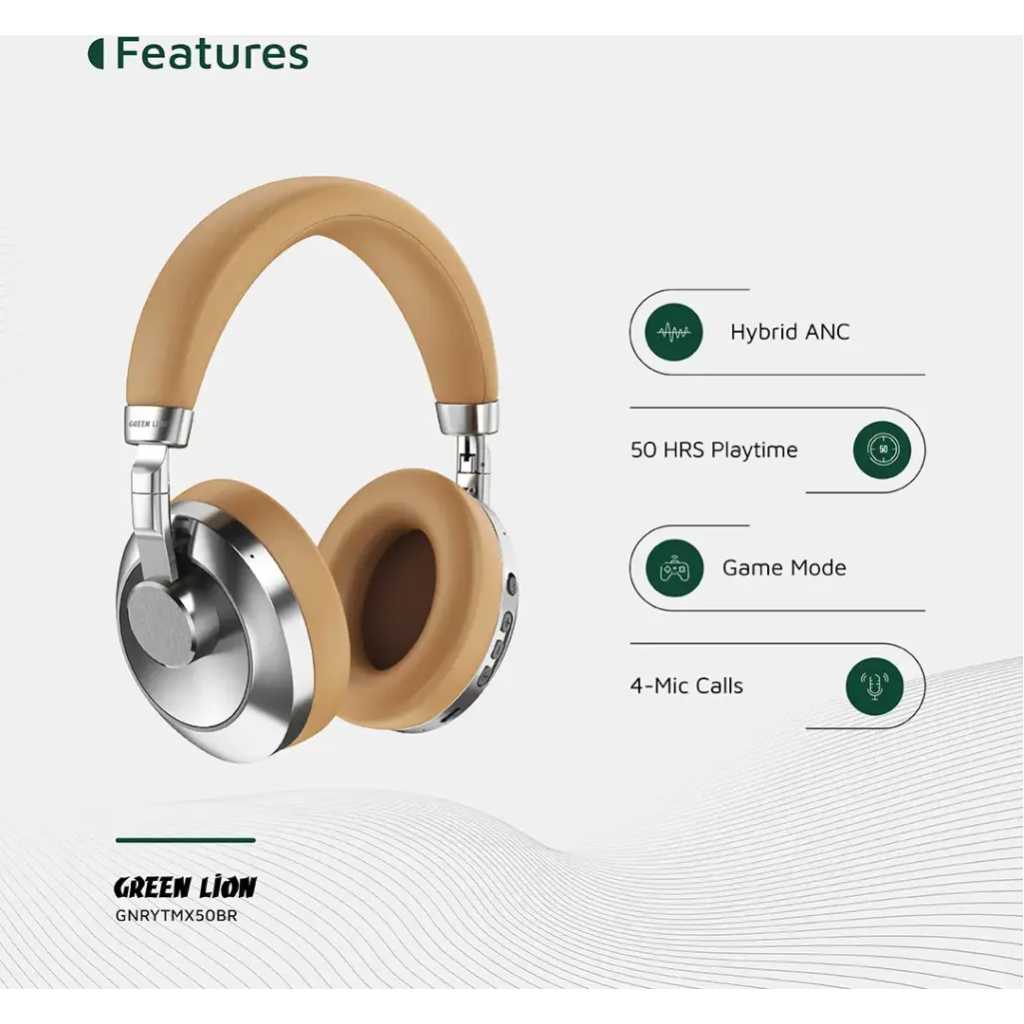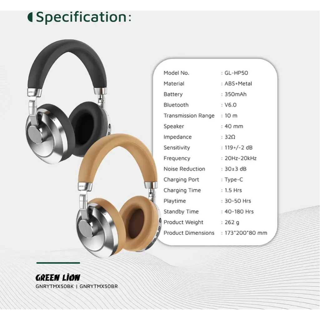 The Green Lion Rhythm X50 ANC Wireless Headphone delivers an immersive listening experience with its Active Noise Cancellation technology, reducing ambient noise by 30 ± 3 dB for crystal-clear sound. Equipped with 40mm speakers and a wide frequency range of 20Hz–20kHz , it produces deep bass, balanced mids, and crisp highs. The headphone features a high-grade metal body combined with ABS material , offering both durability and a premium feel. Enjoy hours of uninterrupted music thanks to its 350mAh battery , providing 30–50 hours of playtime and 40–180 hours of standby time . With Bluetooth V6.0 , you can enjoy a stable wireless connection up to 10 meters away. The headphone charges quickly through its Type-C port , taking only 1.5 hours for a full charge. A built-in voice assistant makes controlling your music and calls effortless. Designed for both style and convenience, the Green Lion Rhythm X50 features a foldable design for easy portability. Whether you’re commuting, traveling, or relaxing at home, its lightweight yet sturdy build ensures maximum comfort during long listening sessions. Combining functionality, elegance, and advanced audio performance, this headphone is an ideal choice for music lovers on the go.