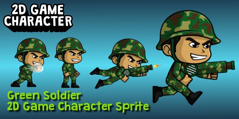 Green Soldier 2D Game Character Sprite. Shooting game, Running Game,Platform Game, and more side Scrolling games.