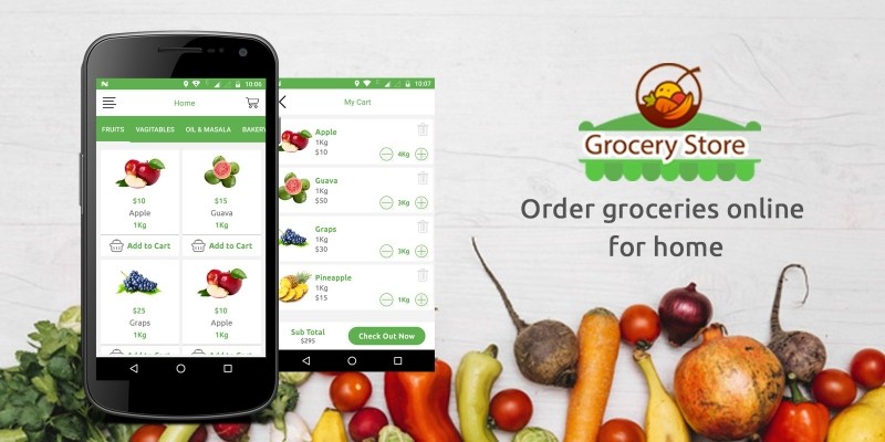 Grocery App UI Template. Grocery Ui template with android and PSD.