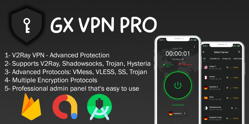 GX Pro VPN - Android App Source Code. Advanced VPN App with admin panel and AdMob & Modern UI The ultimate VPN source code for Android. Supports multiple protocols