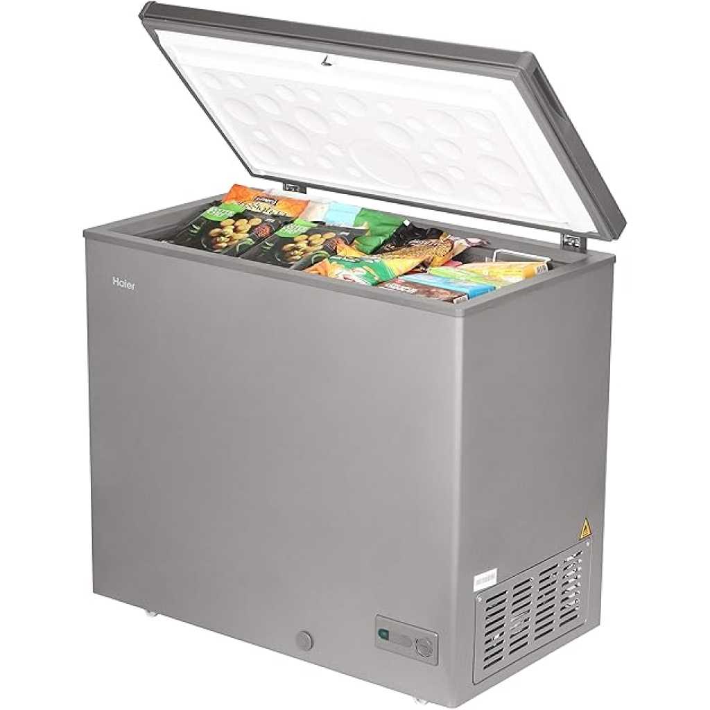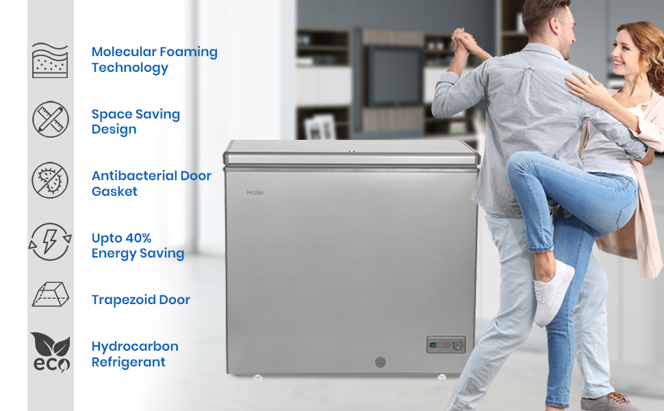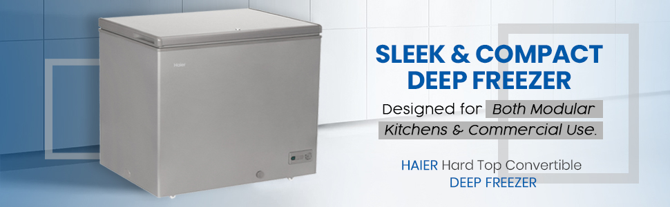 Key Features: Haier 288L Chest Freezer HCF-288SR, 203 Ltrs Net capacity, Single Door Hard Top Deep Freezer, Leak Proof, Up to 40% Energy Saving Leading To Lower Electricity Bills, Convertible, Ideal For Usage In Commercial Establishments And Individual Households/Modular Kitchens up to 40% energy saving leading to lower electricity bills wide voltage range 160-260v, lesser dependency on stabiliser three layered trapezoid door design to avoid leakage of cold air leading to better cooling retention 1 year comprehensive + 3 years additional compressor warranty,Pan india service network available ideal for usage in commercial establishments and individual households/modular kitchens