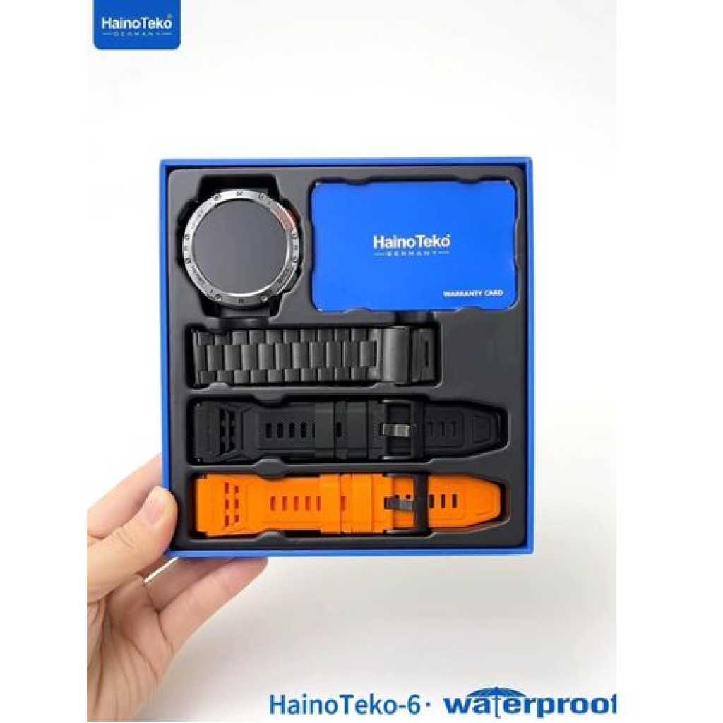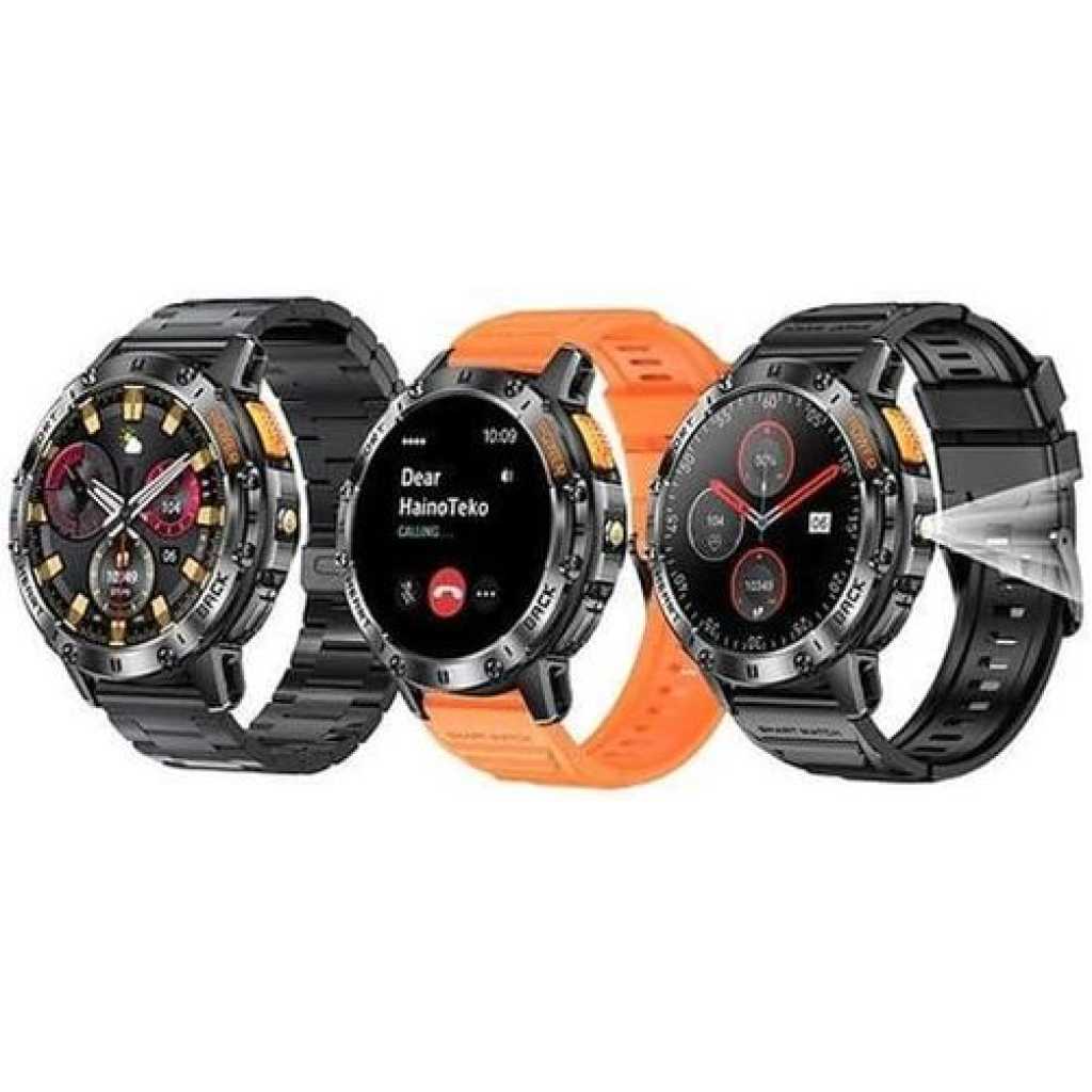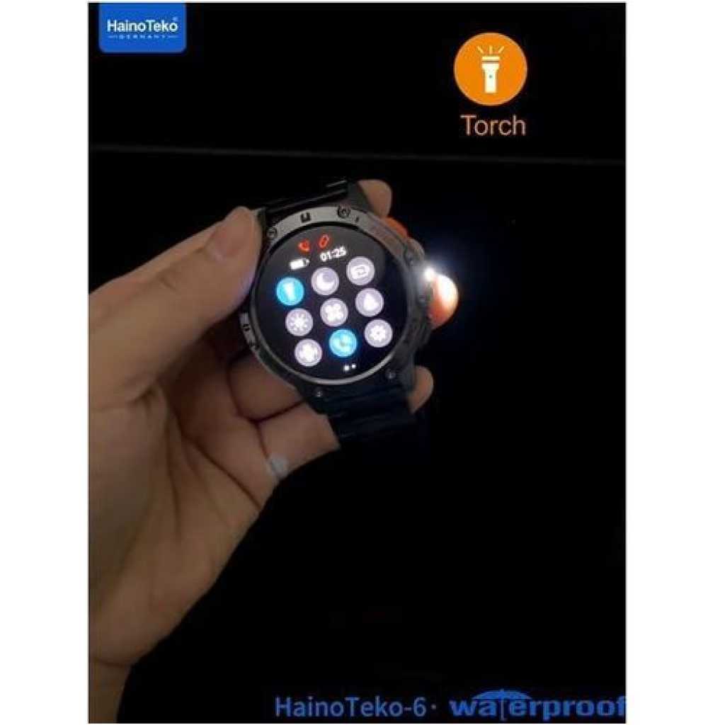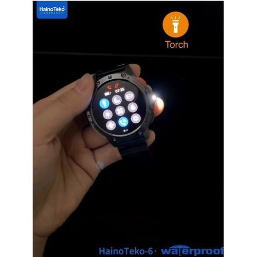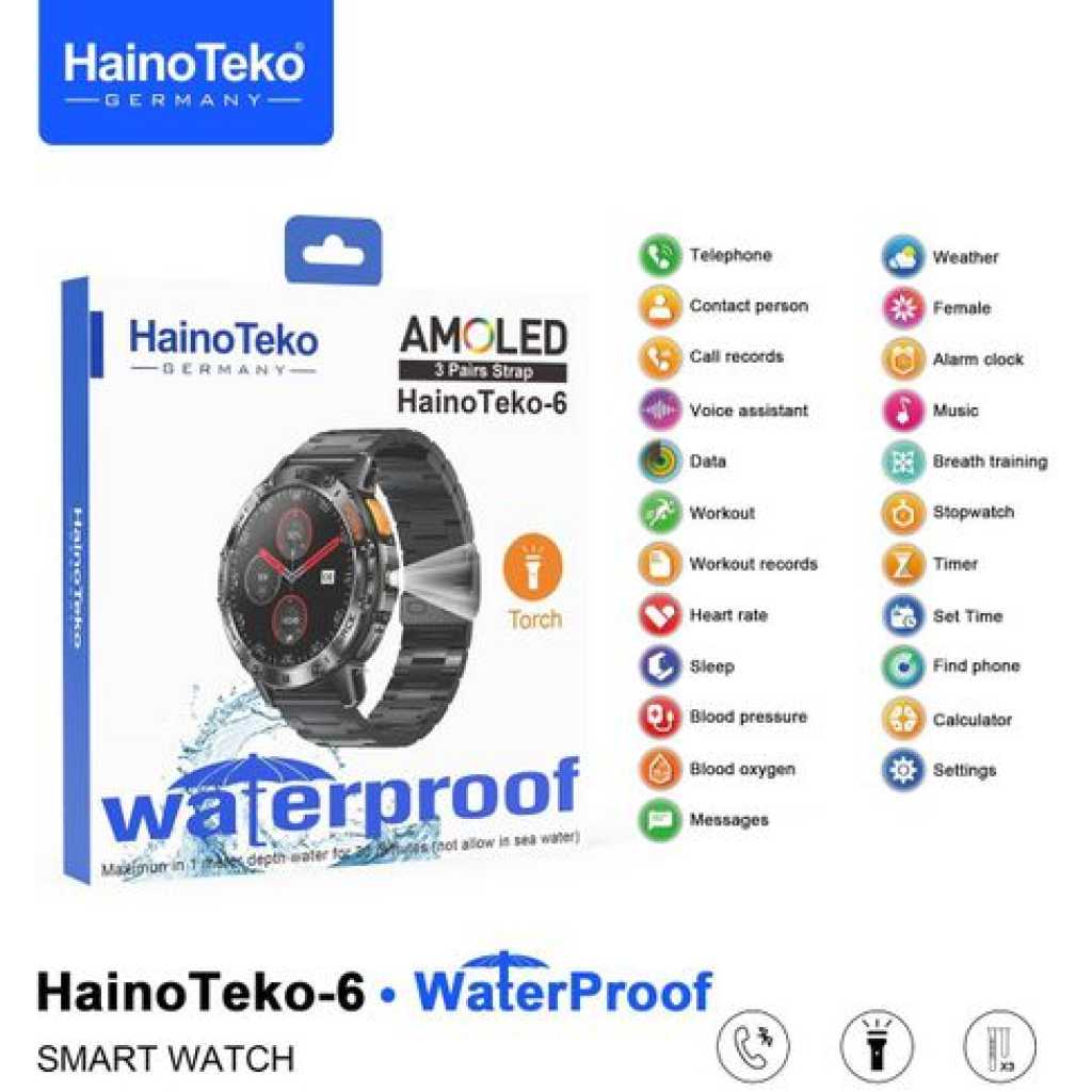 HAINOTEKO Germany Haino Teko-6 Waterproof Smart Watch with AMOLED Display 3 Pair Strap and In-Built Torch Side Spotlight – Track Call, Notification, Sports Activity & Health Designed For Mens and Boys