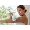 Spinning Spa Brush, White. Pamper yourself with the As Seen on TV Spin Spa Body Brush. It helps to give you healthier and younger looking skin. This Spin Spa shower brush instantly soothes tired and sore muscles, helping you to relax. Use it to get clean while getting a healthy glow every day. This Spin Spa spinning brush works with your favorite soap or body wash for your convenience. The long handle makes reaching your back and lower legs easier. All of the heads are interchangeable to enjoy a different experience with each one. There’s a microderm, massage, pumice and two others.