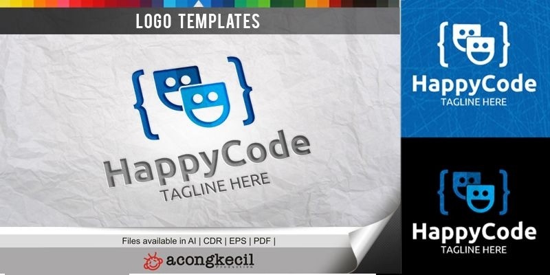Happy Code - Logo Template. Suitable for : Company Logo, Business, Office, Studio, Organization, Foundation or your product name, etc.
