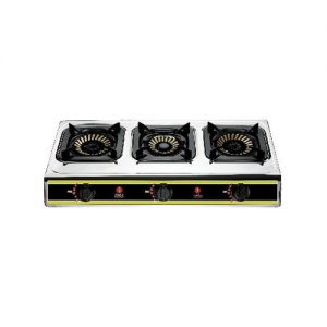 Auto-ignition gas hob Stainless steel tray Two fireplaces with recovery tank.