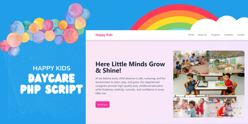 Happy Kids – Kids daycare Management System. “Happy Kids” is Kids daycare and & Child Care script where you can share daycare information, programs, schedules, pages a