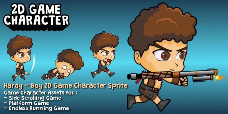 Hardy - Boy 2D Game Character Sprite. Suitable for your Shooting game, Running Game,Platform Game, and more side Scrolling games.​