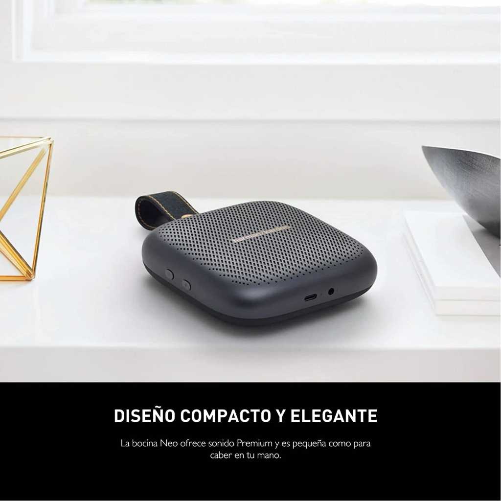 Harman Kardon Neo – Portable Bluetooth Speaker With Strap – Gray. Harman Kardon Neo delivers impeccable sound in a palm-sized, portable package. Compact, sleek, and IPX7 waterproof, this ultra-portable speaker can play continuously for up to 10 hours, while its echo-canceling speakerphone ensures crystal-clear phone calls. Available in three colors, the Harman Kardon Neo is easily transportable by its sturdy strap. On your desk or in the backyard, the Harman Kardon Neo fits beautifully anywhere. Key Features: Harman Kardon Neo – Portable Bluetooth Speaker With Strap – Gray. Beautiful sound in a small package Wireless Bluetooth Streaming 10 hours of playtime IPX7 Waterproof Built-in Speaker Phone