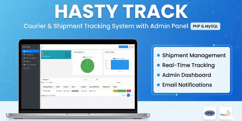 Hasty Track – Courier Shipment Tracking System P. Hasty Track is a complete courier and shipment tracking system built with PHP & MySQL.