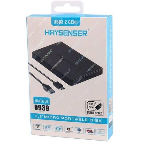 Haysenser USB 3.2 Gen 1Ultra Speed Hard Drive Enclosure, Size 2.5 Inch Micro Portable Disk. The Haysenser portable case is compact and perfect for taking with you on the go. Add more storage space to your computer instantly and take large files with you when you travel. Set-up is straightforward: simply connect a single USB cable and you are ready to go. The drive is powered from the USB cable, so there is no need for an external power supply. Also, it is automatically recognised by the Windows operating system, so there is no software to install and nothing to configure. Saving files is easy – simply drag and drop. Take advantage of the fast data transfer speeds with the USB 3.0 interface by connecting to a SuperSpeed USB 3.2 port. USB 3.0 is backward compatible with USB 3.2 for additional system compatibility. Key Features: Haysenser USB 3.2 Gen 1Ultra Speed Hard Drive Enclosure, Size 2.5 Inch Micro Portable Disk. Haysenser USB 3.2 Gen 1Ultra Speed Hard Drive Enclosure, Size 2.5 Inch Micro Portable Disk, Easy Convert SSD & HDD From Internal to External 5TB HDD. The Haysenser portable case is compact and perfect for taking with you on the go. Add more storage space to your computer instantly and take large files with you when you travel. Set-up is straightforward: simply connect a single USB cable and you are ready to go. The drive is powered by a USB cable, so there is no need for an external power supply. Also, it is automatically recognised by the Windows operating system, so there is no software to install and nothing to configure. Saving files is easy – simply drag and drop. Take advantage of the fast data transfer speeds with the USB 3.0 interface by connecting to a SuperSpeed USB 3.2 port. USB 3.0 is backward compatible with USB 3.2 for additional system compatibility.