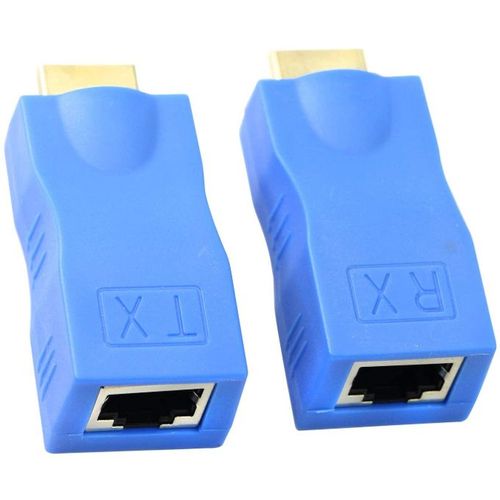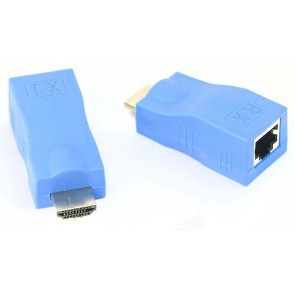 Key Features: HDMI Extender By Cat-5e/6 Cable -Blue. Easy to use: one pair as a complete functional module, no configuration. Long transmission distance: Cat-5e / 6 cable can replace HDMI cable to achieve long-distance transmission. High-definition: using Cat-6 cable transmission distance up to 30 meters to 1080p. Portable No power Needed
