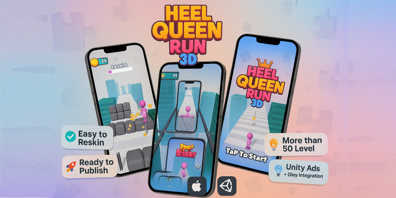 Heel Queen Run 3D - Hyper Casual Mobile Unity Game. Hyper Casual 3D Unity Game Source Code! Perfect for mobile, this game is optimized for Android & iOS. Built in Unity, easy to